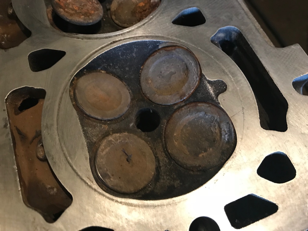Mann, Mann, was macht ihr da oben nur, dass euch permanent die Karren um die Ohren fliegen … Kopf wurde geplant … warum? Hatte der tiefe Abdrücke oder war der verzogen? Ich bin mittlerweile soweit, dass mir ein Kopf, bei dem ich auch nur die Vermutung habe, dass der weich geworden ist (durch deutlich sichtbare Abdrücke der Feuerringe) nicht mehr auf nen Motor kommt, der wandert in den Schrott. Also zum Beispiel sowas hier: Dateianhang: