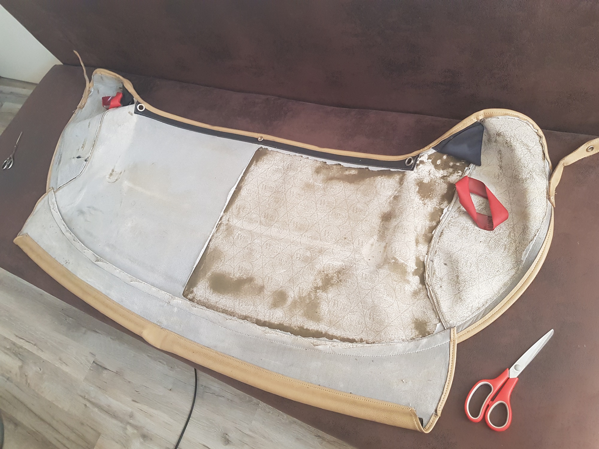 Ich hole das alte Thema mal wieder hoch, heute meine bröselnde Persenning ausgeschnitten und ausgesaugt. Das Ding hat mir immer den Innenraum versaut mit den ganzen Bröseln; Dateianhang: