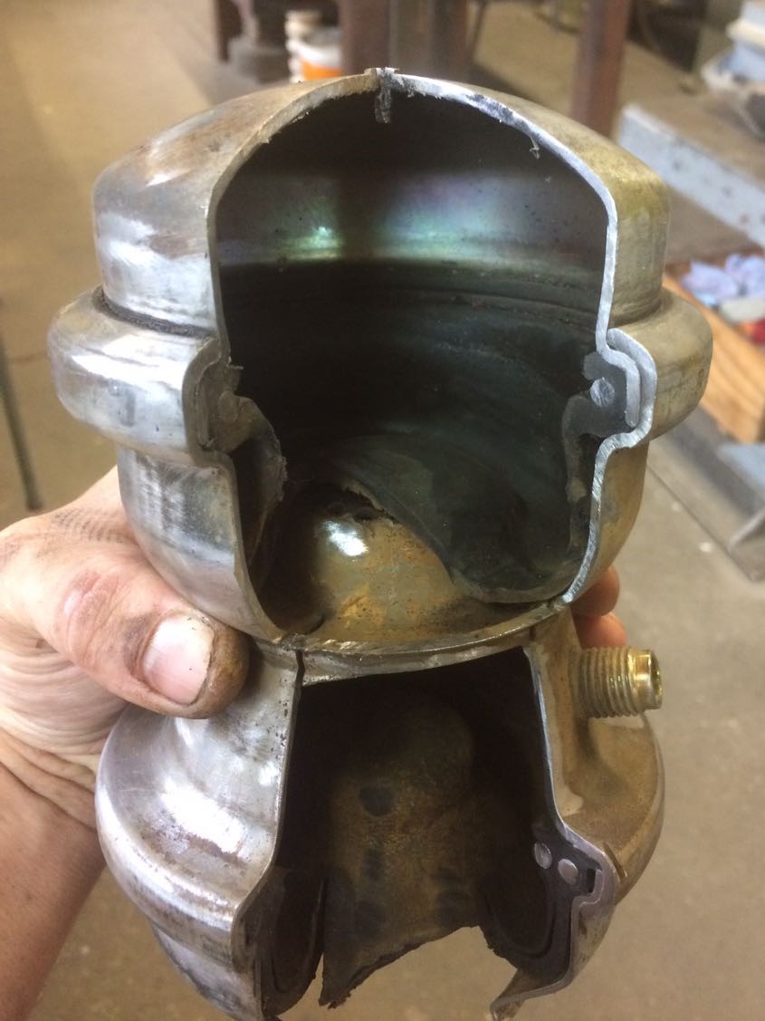 Unsern Markus hat mal eine Einheit auf seine Art mit der Flex anschaulich gemacht. So kann man mal abschätzen was beim Bohren oder Schweissen passieren kann Da wird es am Besten gehen, wenn man vor dem Anbohren der oberen Dose vorab das System mit Vakuum beaufschlagt, damit das Gummiteil *sicher* unten sitzt und nicht angebohrt werden kann. Ich denke mal das Bohrspäne in dem Volumen unschädlich klein sein werden. Danke mal für die Fotos an Markus Dateianhang: