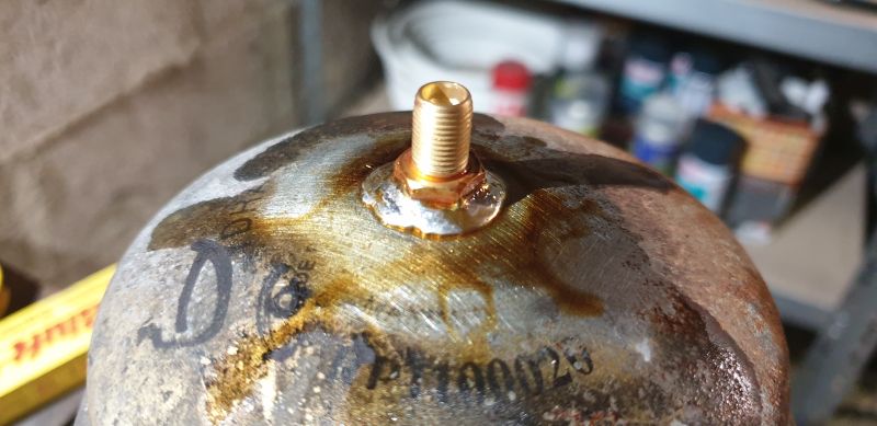 Wieder einer gerettet Zu den bisher bekannten Verfahren kommt gerade noch was Neues. In UK hat sich jemand eine aufwändige Einrichtung gebaut in der der die gesamte obere Hälfte der Einheit in eine klene Druckkammer gespant wird. Vorher wird der vh. Verschlußniet oben am Deckel aufgebohrt. Dann unter Druckgesetzt und in das Loch im Deckel in der Druckkammer ein neuer Niet reingeklopft. Der machts für 27 GBP pro Einheit wenn ich das richtig verstanden habe. ebay kevin_hydragas Riesenvorteil: man braucht sich keine Gedanken um Platz und ggf. Löcher für zusätzliche Schraderventile machen. Riesennachteil: man kann wieder keinen Stickstoff nachfüllen. Interessanter Thread bei FB. Ian Kennedy schrieb z.B. ... mittlerer Gasverlust läge bei 4% pro Jahr. Wobei es auch Ausreißer nach oben und unten gäbe. Nun Forumserfahrungen bestätigen das bisher so nicht. Wir haben aber auch nichts repräsentatives, mangels Masse Messwerte. Bei den angesagten -4% kommt folgendes raus. Premisse dabei, dass seit vermutlich 1998 von Dunlop keine oberen Diaphragmen mehr gefüllt worden sind. (Schlußfolgerung wegen Umstellung auf MG TF 3 Jahre später) Jahr __ p -4% [Bar] 1998 17,0 1999 16,3 2000 15,7 2001 15,0 2002 14,4 2003 13,9 2004 13,3 2005 12,8 2006 12,3 2007 11,8 2008 11,3 2009 10,9 2010 10,4 2011 10,0 2012 9,6 2013 9,2 2014 8,8 2015 8,5 2016 8,2 2017 7,8 2018 7,5 2019 7,2 2020 6,9 2021 6,6 2022 6,4 2023 6,1 2024 5,9 2025 5,6