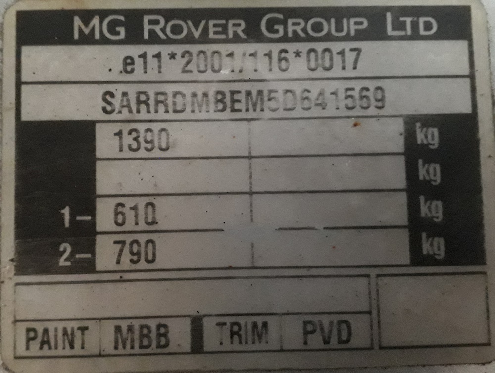 _________________ MG F 120, EZ 03/1999 (09/2014 - 04/2018) MG TF 120, EZ 10/2005, VIN SARRDMBEM5D641569 (05/2018-06/2021 MG TF 115, EZ 06/2004, VIN SARRDMBEM4D628185 (07/2021- )