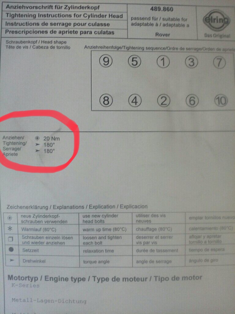 Die Anleitung war aber alt und nicht für die verbaute kopfdichtung 20nm sind 10nm zu wenig https://www.mgfcar.de/library/more.htm 30 sollten es schon sein und nicht einfach die Schrauben nach Reihenfolge auf 30nm bringen und gut sondern nochmals rund gehen ob sich noch was gesetzt hat und eine Schraube nun lose ist