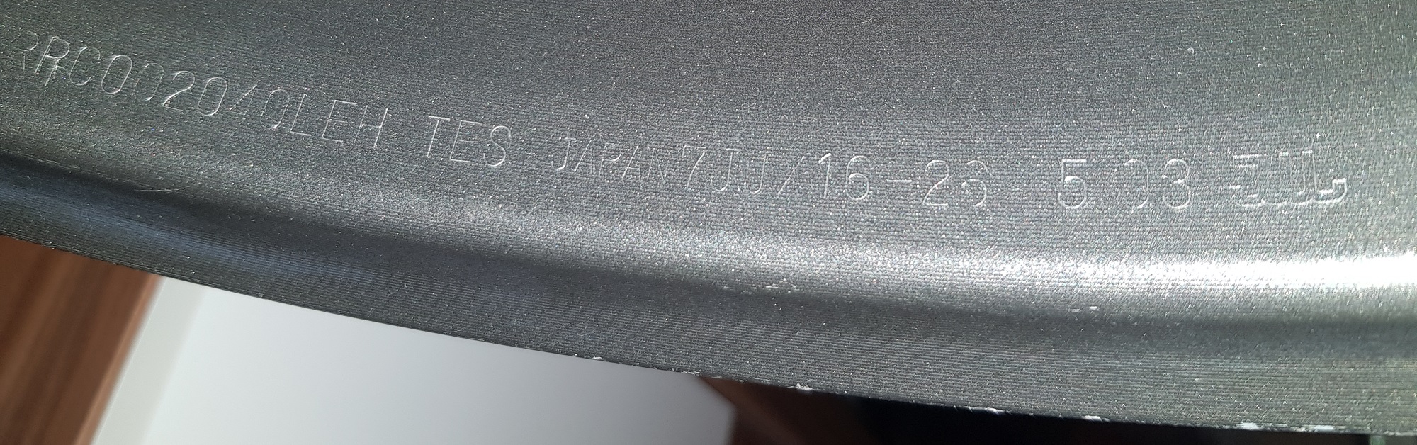 Is jetzt natürlich eine aus der Luft gegriffene Zahl weil die Wage nich kalibriert ist. Aber die im Internet genannten 6,2 kg kommen hin und damit ist die ULW Felge auf dem Niveau von den OZ Ultraleggera / Allegeritta Schmiedefelgen die imho die Messlatte setzen bei ungefederten Massen. Wie dem auch sei, mir sind Fragen entstanden: 1. die silberne Felge ist innen blank... Da steht nur auf einer Speiche " 38 H2" und der nächsten " AF70A25". Das wars. Das wird dann wohl nix mit TÜV? Es ist aber sehr offensichtlich, dass die beiden schwarzen Felgen baugleich sind. 2. die zwei schwarzen sind scheinbar vollständig gekennzeichnet: Auf einer Speiche steht " 44" bzw. bei der anderen " 61" auf der nächsten Speiche bei beiden " A670 A26 E12" und auf der Innenkante der Felge steht bei beiden " RRC002040LEH" " TES" " JAPAN" " 7JJX16-26" " 503" " JWL" und "00376" oder "00393". Dateianhang: