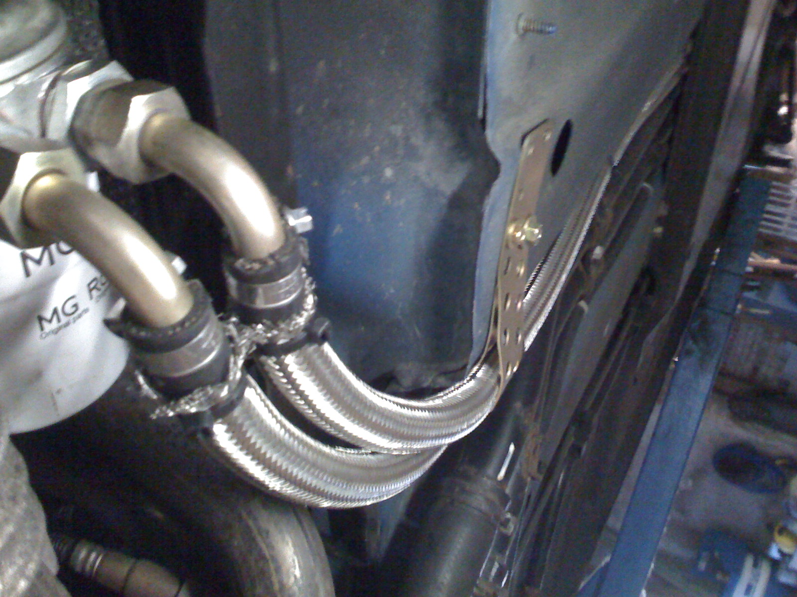 ....... nachdem "X-Power Uwe"  mir am Samstag die Edelstahlkühlrohre und den AMT Öl-/Wasserkühler eingebaut hat, hier mal kurz die ersten Erfahrungen: Im normlen Landstraßen- und Stadtbetrieb bleibt die Öltemperatur jetzt bei ca. 90° stehen. Bei forschen Autobahnfahrten - gestestet bei ca. 160 km/h Dauertempo über ca. 40 Kilometer - friert die Öltemperatur bei 105° ein. Dieser Wert ist jetzt etwas höher, als die Temperaturen die wohl beim Frontkühlereinbau in allen Belastungssituationen realisiert werden. Jedoch gemessen am minimalen Aufwand bei minimalstem Platzbedarf, scheint mir die Öl-/Wasserkühlerlösung eine überlegenswerte Alternative, mit der ich jedenfalls jetzt auf Dauer gut leben kann. Vielleicht interessant für diejenigen, die das Kühlwasser-System beim MGF für bereits ausgelastet hielten: Die Wassertemperatur bleibt in allen Belastungssituation auf dem absolut gleichen Stand wie vor dem Umbau. Viele Grüße und nochmals vielen Dank ans "Schrauber-Genie" Uwe  - Hansi