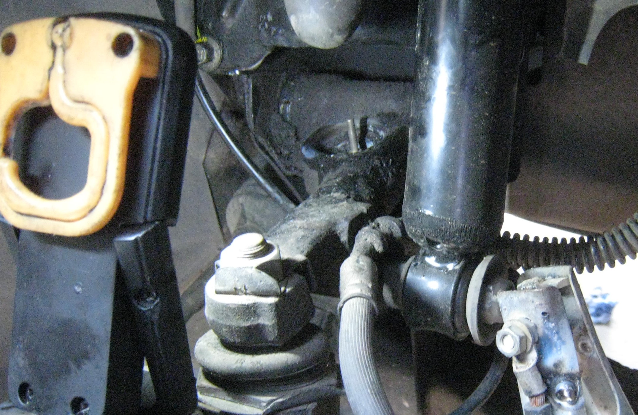 Empfehle als Master für die Passung ein Ersatz-Kunststoffteil wo man den O-Ring der oben abdichtet entfernt. Wenn das Teil sauber reingeht , und der Kegel unten im Oberlenker sauber ist, dann kann man davon ausgehen das der komplette Knuckle auch da reingeht unf mit O-Ring oben abdichtet.