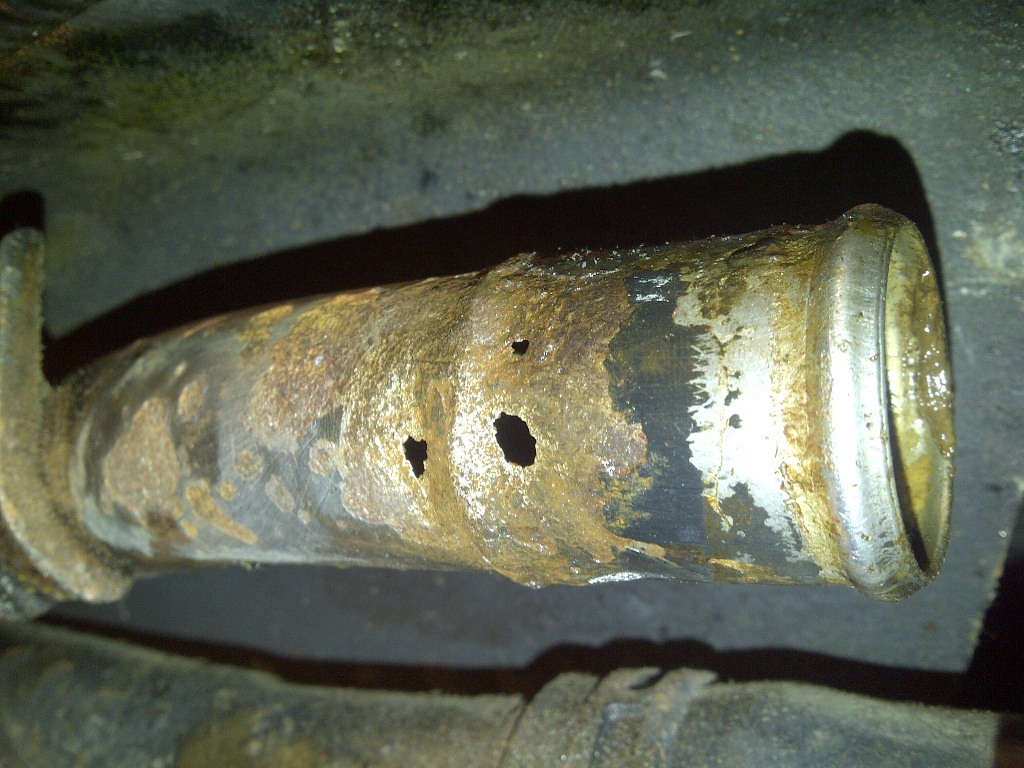 Glück gehabt, dass das Rostloch nicht auf der Autobahn nach HH aufgegangen ist, sonst wäre ein HGF wohl ziemlich sicher gewesen. Zeit für Edelstahl, würde ich sagen ...