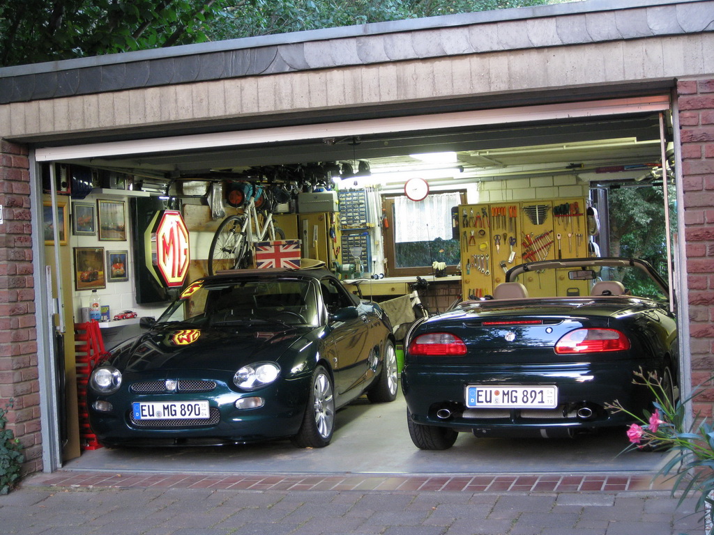 Wie wenig Platz man doch zum (MG) schrauben braucht wollte ich mal hier am Beispiel meiner Garage zeigen. Hier habe ich restlos alles selber gemacht, egal ob Stoßdämpfertausch, Heckscheibenwechsel, Zahnriemen, WaPu, Unterbodenrohre, Kat. & Hosenrohr etc. etc. ... Gute Abstellböcke, zwei Auffahrrampen, ein Wagenheber, LED Leuchten (mangels Stromanschluss) und ein prall gefüllter Werkzeugwagen, geht alles Auf auf, zeigt wo ihr so schraubt