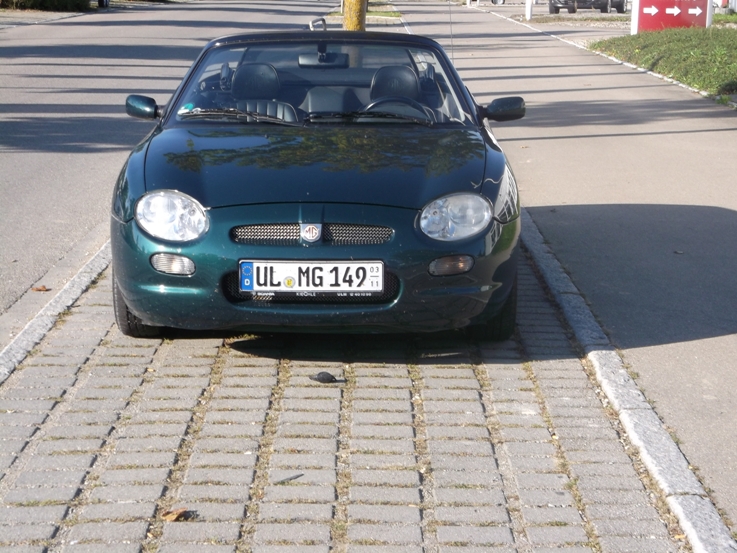 Danke. Fühl mich recht Willkommen hier Lars.... Wo sollte das an welchem Sonntag gewesen sein??? Diesen Sonntag hatte der Zweisitzer Pause. Wir waren mit dem Schwedenkombi in Riedlingen (5Personen).... Wir beim Gairing eingeladen. Auf dem Heimweg haben Wir uns kurz einen MG angesehen. Da steht ein schwarzer MG TF mit 136PS. für 5.500€ Bis auf die Innenausstattung (schönere Ledersitze  ) gefällt mir der MG F viel besser. Und ja ein GRÜNER MG!!!! Mit British Racing Green gefällt er mir am Besten. Ist aber Geschmacksache