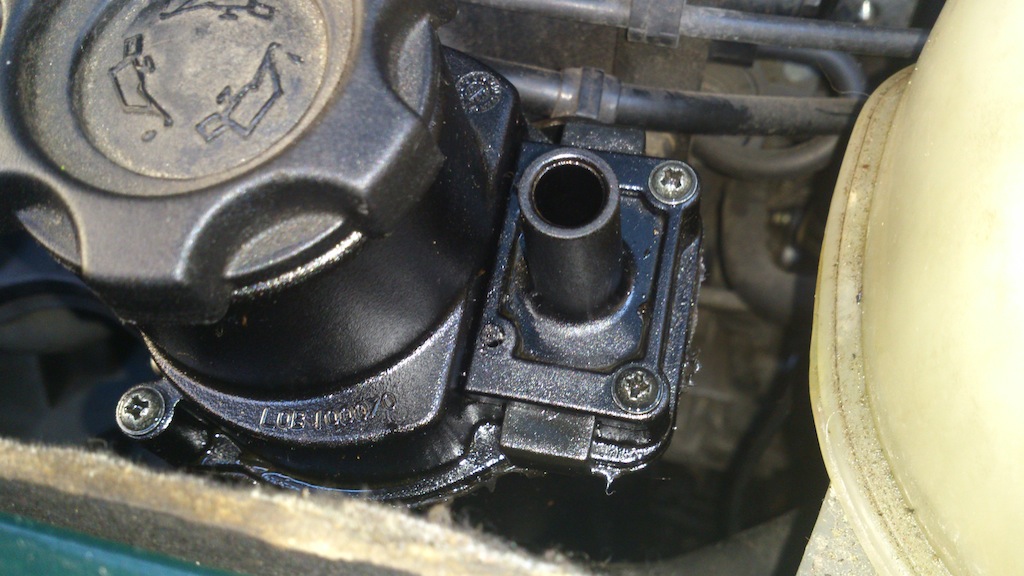 Dumme Frage, gibt es einen Schlauch zur Kurbelgehäuseentlüftung, der vielleicht ab ist oder so.