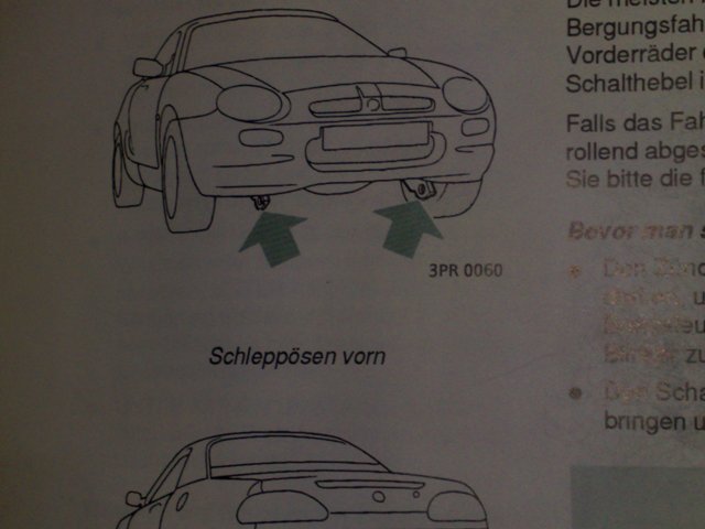 Zitat: Da der F keine Abschleppösen vorne hat bist du dir sicher ...wieso steht dann in der Betriebsanleitung ... deutlich