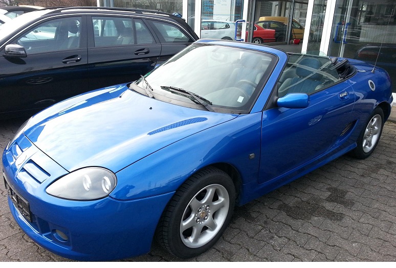 Hallo ! Ich bin der Peter aus Duisburg/Moers .Erst sollte es bei mir ein MG TF 160 werden aber jetzt bin ich doch schon froh drüber das ich mich für das Sondermodell MG TF 135 "Cool Blue" entschieden habe ! Als ich ihn so beim Händler gesehen habe war es LIEBE auf den ersten Blick ! Er hat 90 TKM auf der Uhr und stand fast ein Jahr abgemeldet in der Garage . TÜV und ein Ölwechsel hat der kleine vor einer Woche auch neu bekommen. Der Frühling kann kommen !!!!