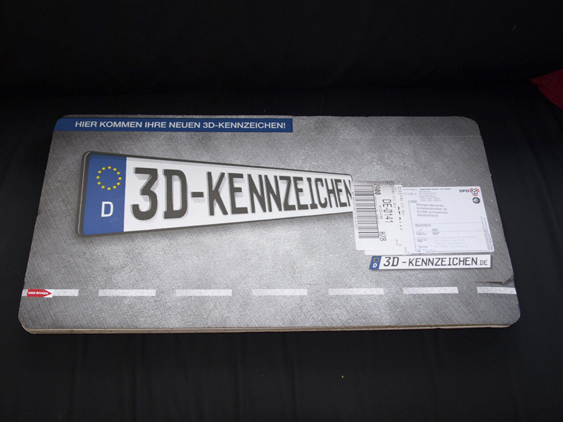 So, die 3D-Schilder sind dann heute endlich gekommen, wird auch Zeit, denn morgen läuft die ADAC-Versicherung ab. Schick schaut’s aus, finde ich. Schon der Karton macht Spaß, das Auspacken ist ja immer mit das Schönste, nicht wahr? Dateianhang: