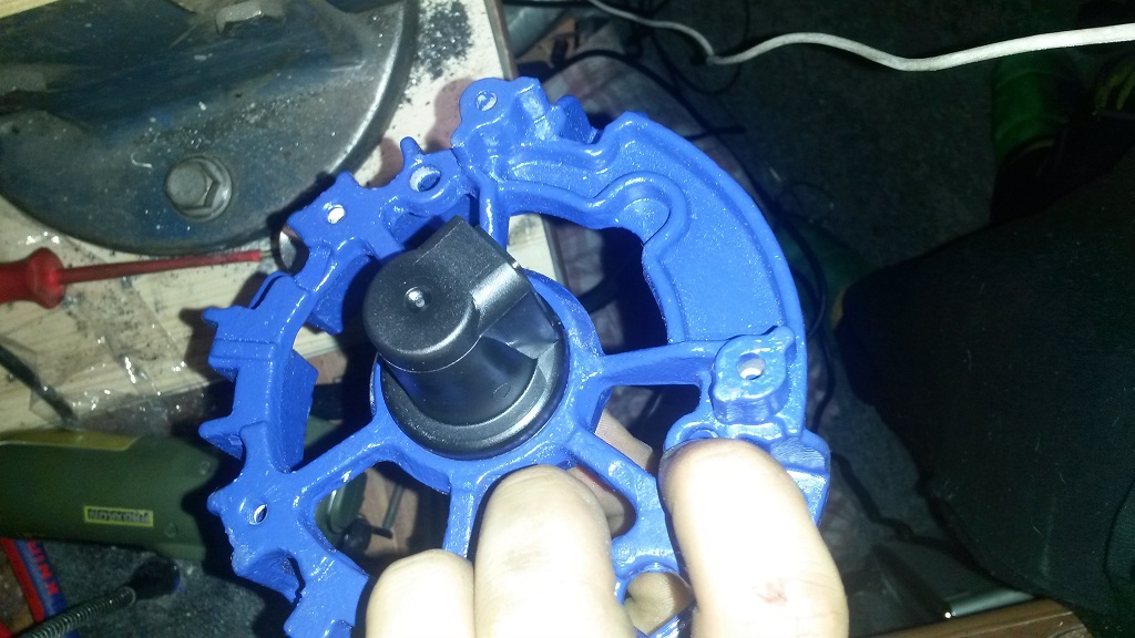 Gehäuse und Riemenscheibe wurden Gesandstrahlt. Gehäuse danach mit Brantho Korrux Ultramarineblau angemalt.