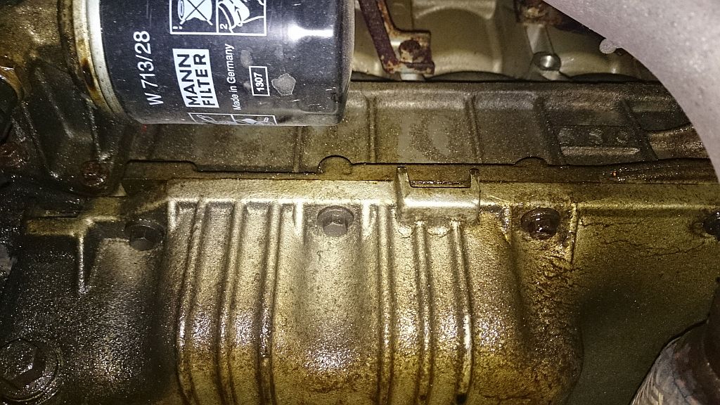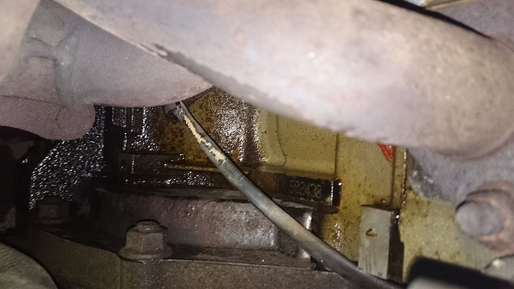 Nächste Möglichkeit wäre daher der Nockenwellenkasten, also nicht der Deckel oben, sondern die Trennung darunter. Wenn die Dichtfläche auf der Auslassseite nicht mehr richtig schließt, dann kann es da schon raussiffen. Im mittleren Bereich tropft das dann auf den Auspuffkrümmer und verbrennt, links und rechts läuft es am Block runter.