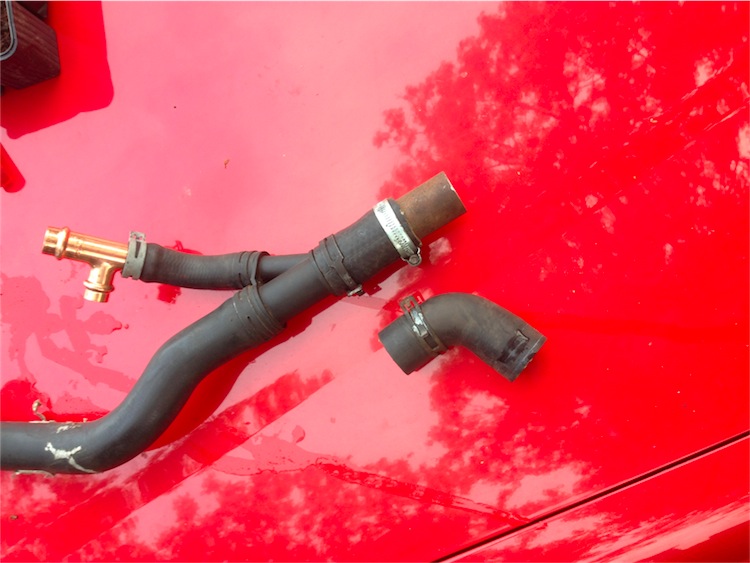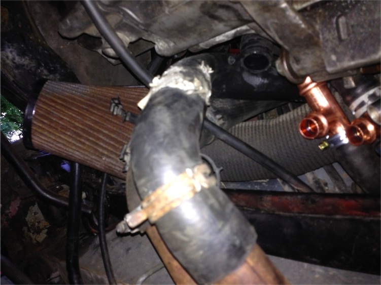 Ich hab die letzten Klippen zu umschiffen , Jan sagte mir , ich müsse unbedingt die Kaltluftzufuhr zum Kompressorrad noch so umgestalten, das da ein Luftfilter irgendwo angebracht werden kann. Also ist die Rohrführung des Wasserkreislaufes mein Thema , die Schläuche laufen nämlich direkt vor dem Kompressorrad des Turbos vorbei ... Kack ... Ich hab das wieder auseinander gerupft und hab mir gedacht, ich verlänger mal den Schlauch, um die Wasserschläuche dann vom Kopressoreingang wegdrehen/vorbei verlegen zu können ... Ich weiß nich ganz wie das beim BlueT gemacht worden is , da da ja man das PRT verbaut is ... Da will ein 60er Rohr/Schlauch geradewegs durch das Schlauchgewirr verlegt werden , ohne irgendwie was anderes zu behindern/abzudrücken ... , tricky, sag ich ... ich hab mir das jetzt mal so gedacht , wie üblich mit Bordmitteln ... Flexx , wo is Sie noch ?  Dateianhang: