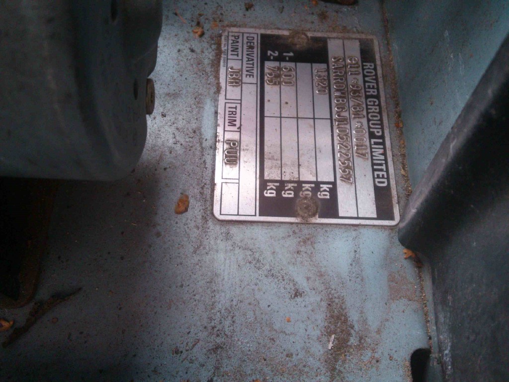 SARRDWBGMYD519331 Date Tuesday, 9th May 2000 @ 09:38:03 Paint Code JRJ Sequence Number 60997 EXPORT Country GERMANY Exterior Paint Tahiti Blue Pearlescent Interior Trim Black Leather Engine K Series 1800 120bhp