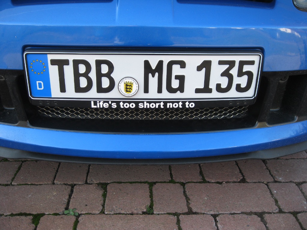 Hallo nach Hannover! Ging eigentlich garnicht ums Kennzeichen selbst (das hab' ich von Anfang an), sondern um die Kennzeichenverstärkungen mit dem MG-Werbespruch... Gefiel sogar meinen Damen, weil's sich so britisch anhört. Christof