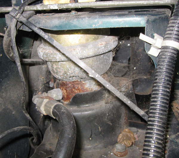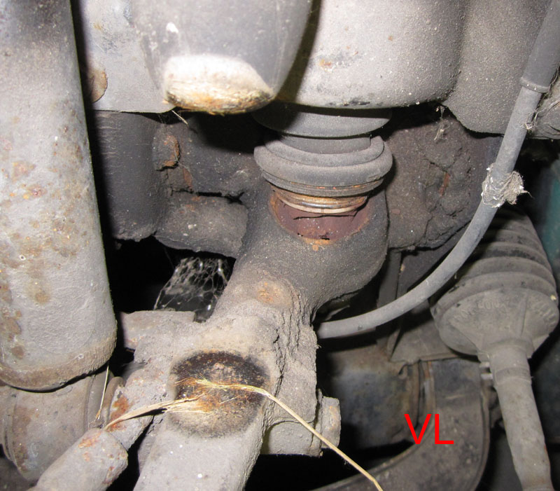 Frage I: Sind die knuckle joints (auf deutsch???) noch in Ordnung? Zwei sehen aus, als ob sie abgebrochen wären. Sogar drei, was bedeuten kann das unten die inneren Platten festgerostet sind und ggf. neue Unterlenker nötig sind. Man kriegt die mit viel Geduld und nem Schweissgerät auch in montiertem Zustand raus