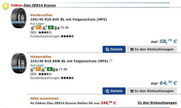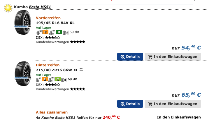 Das Reifenthema wird zunehmend schwieriger scheint mir, jetzt wo yokohama den 215er nur noch mit kleinem Index anbietet und der Pirelli wohl auslaufen wird, wenn ich das richtig gesehen habe.