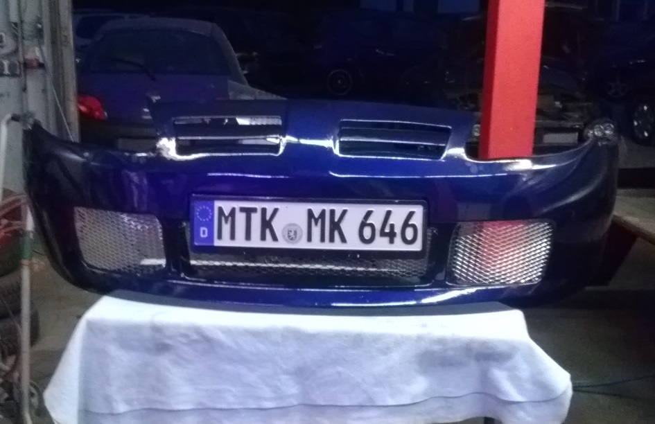 was haltet Ihr denn von der Ansicht hier??? Stege stehen lassen und außen die Ausschnitte für die Nebler ausschneiden und dann innen schwarz lackieren und diese Streckgitter davor... Gleich wie in der Mitte original ist... Dateianhang: