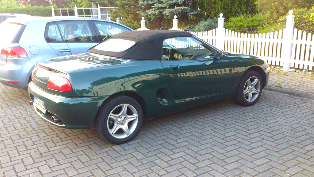 Hallo liebe Forenmitglieder, habe gerade eine MGF VVC von 97 erstanden. Der Weg zu dem Fahrzeug war kurz, aber intensiv. Suchte ein Cabrio/Roadster mit Charakter für etwa 5t € --- was bleibt einem da übrig? Wenig, wenn man den MGF mal probegefahren ist, denke ich... noch zumindest  - Hatte lange ne Barchetta im Blick, aber: pffft... MGF! Das Forum hier hat mir jedenfalls schon sehr geholfen bei der Kaufentscheidung - danke der ganzen Community dafür! Es ist ein MGF VVC von 97 (78t km) in Racing Green geworden - mit MLS Zylinderkopfdichtung, SS Kühlwasserrohren (unten und am Motor selbst), 52er Alu-Drosselklappe und K&N 57i Luftfilter geworden (hat genau so TÜV bekommen  )- letzterer offen überm Motor (nach allem was ich gelesen habe kommen mir natürlich die Fragen: wie problematisch ist die angesaugte warme Luft? wie wichtig die Einstellung des Leerlaufs nach dem Mod? Lieber zurückbauen und Platten-Sportfilter einsetzen? (TÜV in Zukunft?) - ist aber vielleicht der falsche Thread dafür......). Ansonsten wirkt das Auto TOP gepflegt und ich freu mich sehr drauf (hole ihn Sonntag erst ab...). Nur verbesserte Bremsen stehen für mich auf dem Zettel - insgesamt will ich das Auto aber v.a. erhalten und genießen und nicht tunen / modifizieren. Freue mich auf die Teilnahme hier, wenngleich sicher erst mal als 'NOOB'  Liebe Grüße, Christian