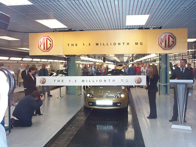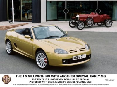 As you can see it's the launch of the 1,500,000th MG known as the Golden Jubilee TF (for the Queen's Golden Jubilee), it has special features such as the Queens crest on the headrests and wheel cap centres (which I have pictures of). In the background you may see Roche Bentley and Roger Parker of the MGOC, my question is...why has it got german number plates ?, it has always been seen with British ones.