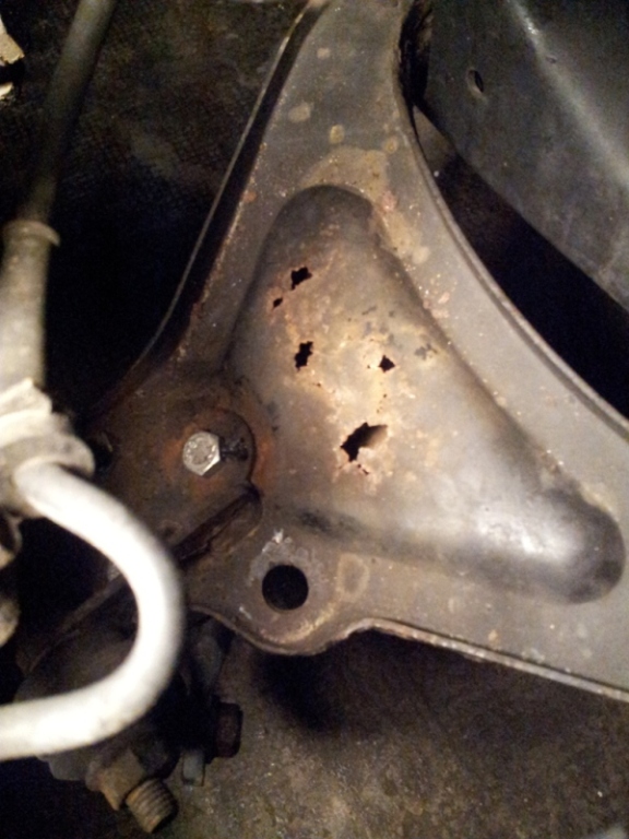 beim Wechseln des vorderen linken Stossdämpfers musste ich feststellen, dass der Querlenker auf der Oberseite an der gewölbten Stelle stark durchgerostet ist (siehe Foto). Was meint ihr? Erneuern oder ist das noch im toleranten Bereich? Auf der Unterseite ist kein Rost, auch an den Festen Teilen nicht. Der rechte Querlenker ist komplett ohne Rost.