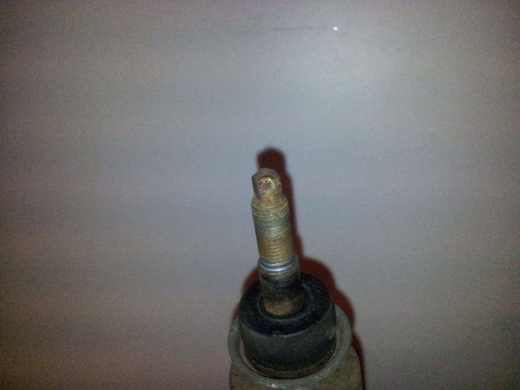 Auf Dieter's Homepage hat er einen 14er Ringschlüssel und eine Ratsche oben drauf, jedoch hat die Gewindestange des Dämpfers an der Spitze eine Ovale Form, so dass dort keine Nuss passt.