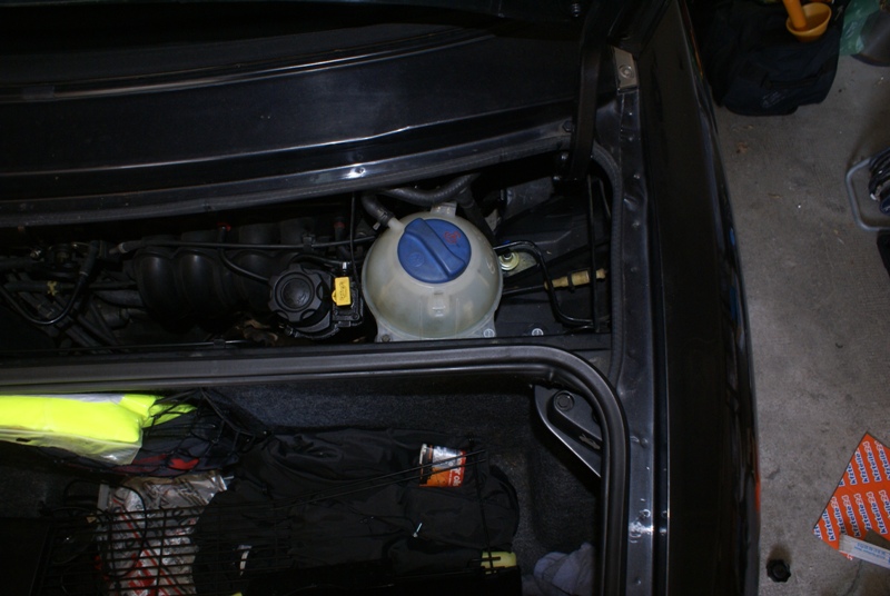 So heute habe ich mich endlich an den Querlenker gemacht. War doch etwas mehr Aufwand den alten da rauszubekommen, da eigentlich alle Schrauben vom Hilfsrahmen derart zugerostet waren, dass ich Angst hatte sie abzureissen. Während sie in WD40 badeten habe ich den Ausgleichsbehälter vom Polo 6N eingebaut.