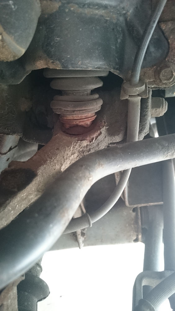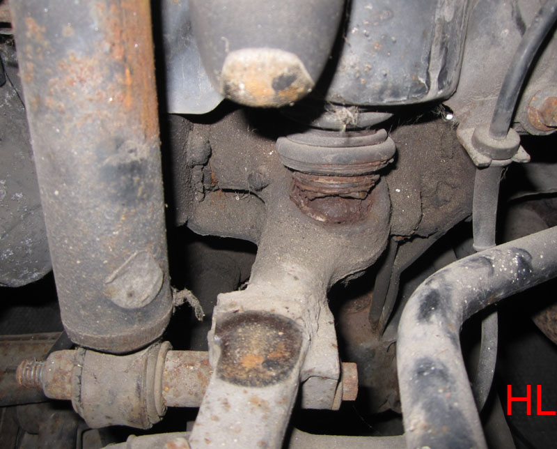 Frage I: Sind die knuckle joints (auf deutsch???) noch in Ordnung? Zwei sehen aus, als ob sie abgebrochen wären. Sogar drei, was bedeuten kann das unten die inneren Platten festgerostet sind und ggf. neue Unterlenker nötig sind. Man kriegt die mit viel Geduld und nem Schweissgerät auch in montiertem Zustand raus