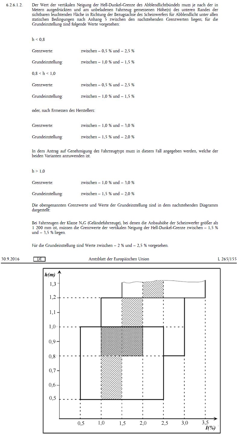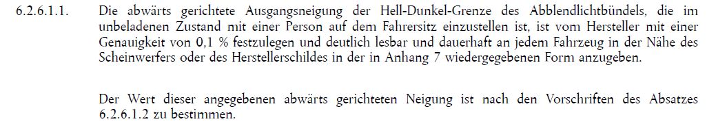 Äh, nein, das würde ich ganz anders formulieren; Die Regelung Nr. 48 der Wirtschaftskommission der Vereinten Nationen für Europa (UN/ECE) — Einheitliche Bedingungen für die Genehmigung von Fahrzeugen hinsichtlich des Anbaus der Beleuchtungs- und Lichtsignaleinrichtungen [2016/1723]gibt im Kapitel 6.2.6.1.1. Dateianhang: