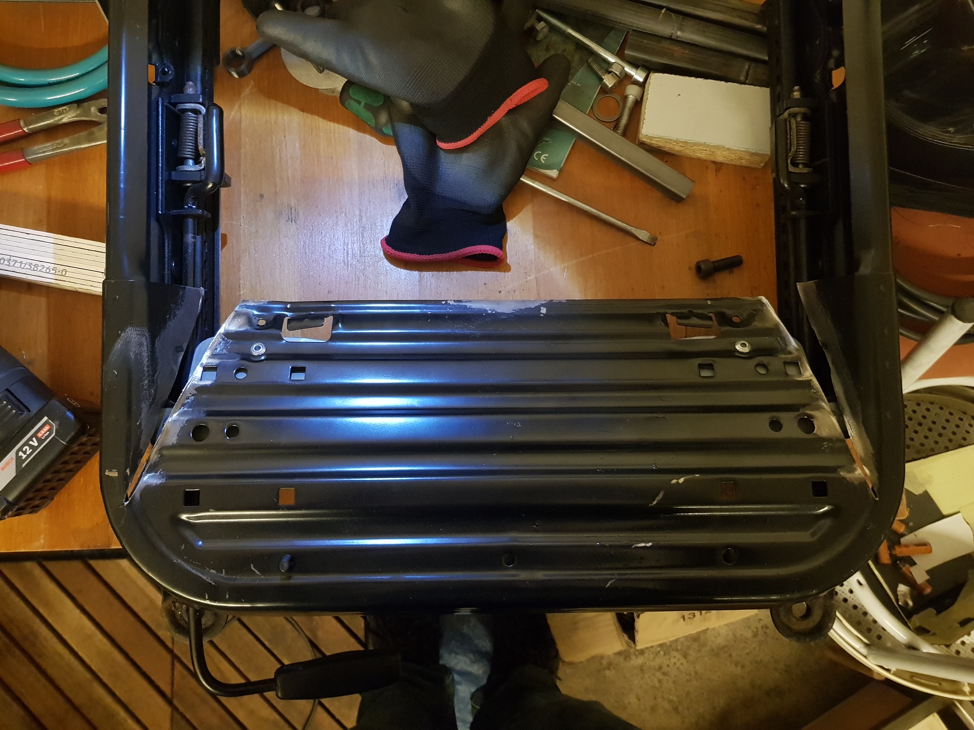 Wir konnten gegenüber der englischen Variante nochmal 5 mm Sitztiefe rausholen, indem wir das Blech so tief wie es ging angeschweißt haben. Heute werde ich nochmal mit der Spraydose lackieren. Kurze Frage: Gibt es eigentlich irgendwo eine Anleitung, wie man den Sitz zerlegt? Is da was in den MG Rover Werkstatthandbüchern drin? Die Federn von Rimmer sind immer noch nicht da. Grüße aus Chemnitz.