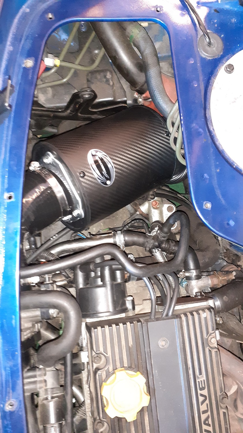 Bin mir nur nicht sicher wie rum der Filter muss. Ich habe keine Flow Markierung gefunden. Das ist also der Schlauchland 76/67er Silikonschlauch der recht gut auf der DK und dem Simota sitzt. Der Luftfilter ist einer der letzten erhältlichen der Big Airbox Variante (WS-553). Wollte ich bewusst so haben, weil ich damals sehr positive akustische Impressionen bei Medaber "erbeifahren" durfte. Die kleinere Variante gibt es noch zu hauf. Da brauche ich erstmal keinen Daytona.