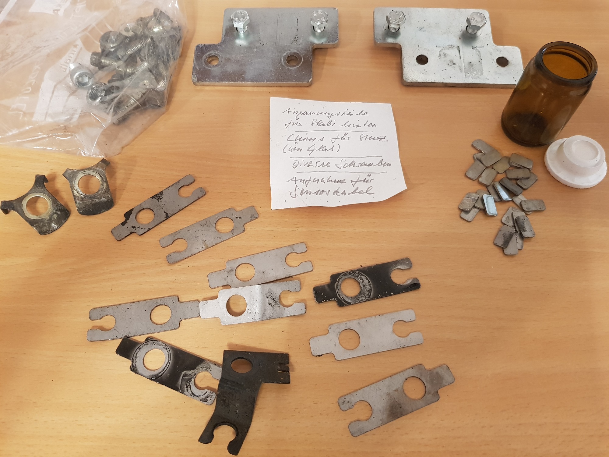 Auf dem Zettel steht: - Anpassungsteile fürs Stabi hinten - Chims für Sturz (im Glas) - Aufnahme für Sensorkabel Grüße aus Chemnitz