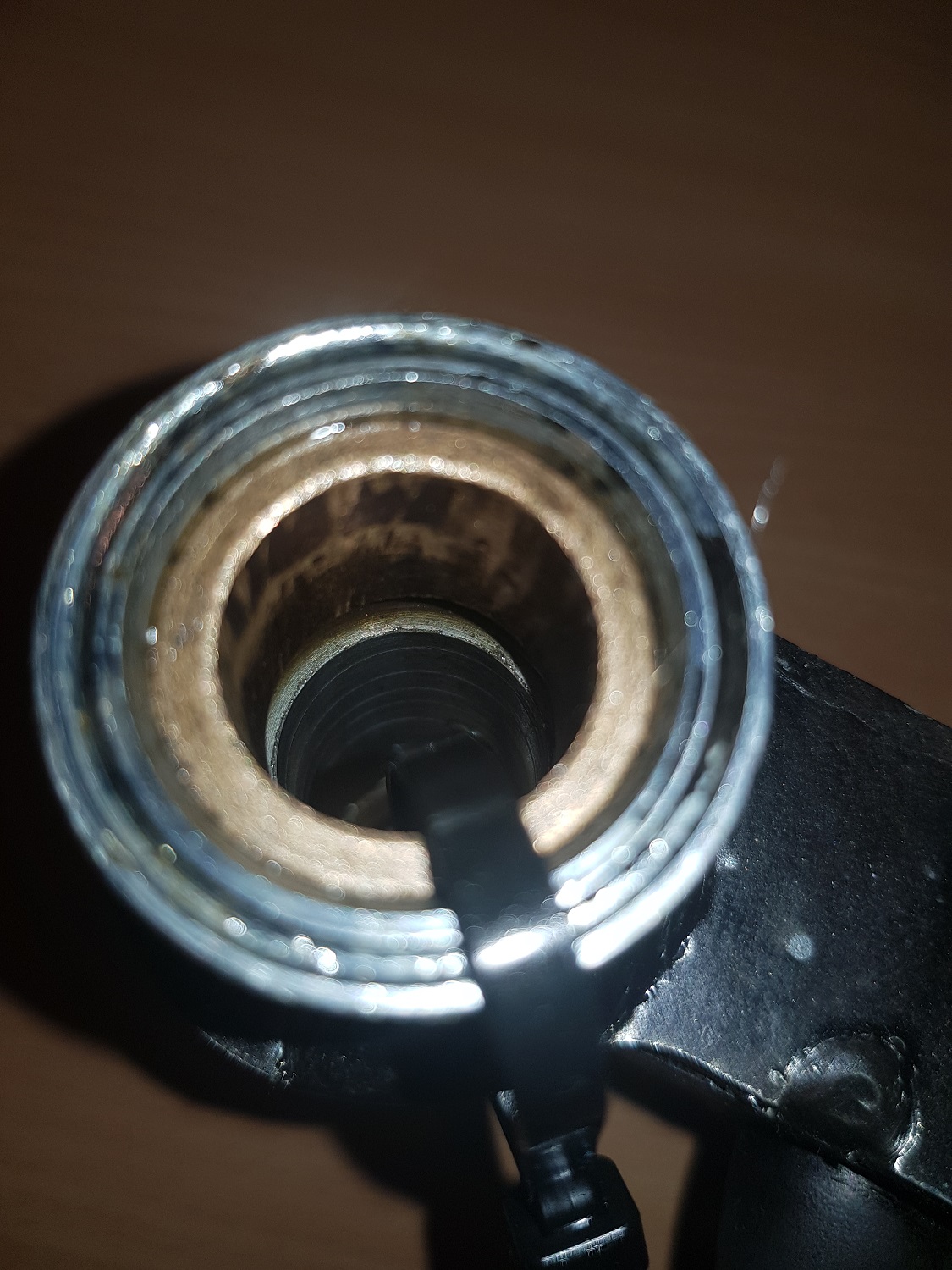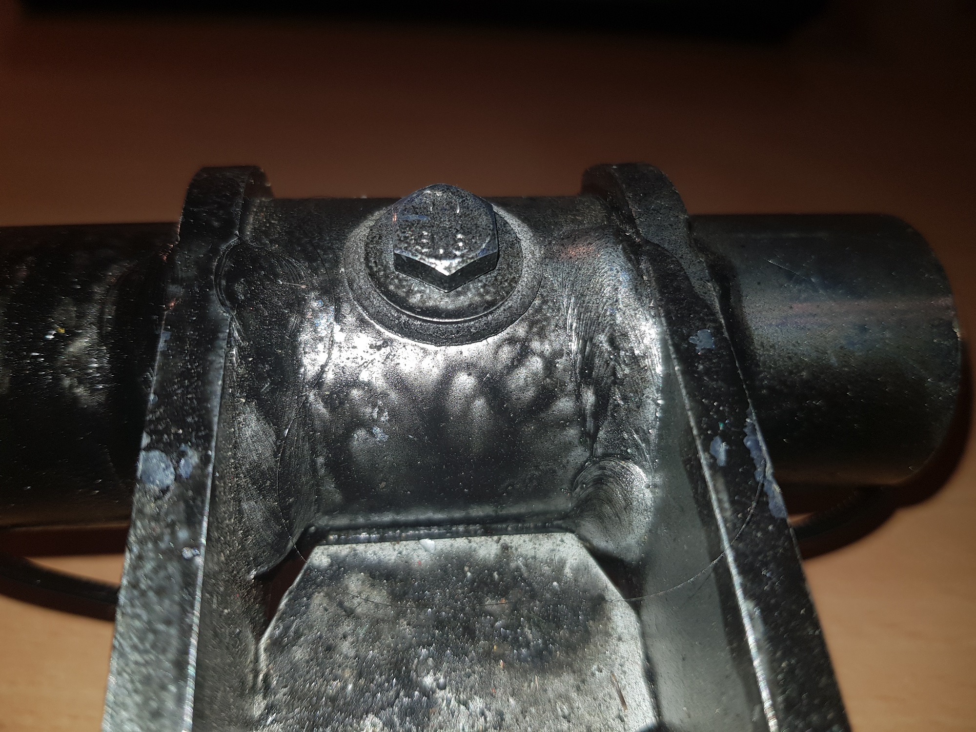 das hatte der Vorbesitzer scheinbar schon mit einer Art Farbspraydose versucht. Leider ziemlich unschön. Also man sieht das es mit der Dose im eingebauten Zustand gemacht wurde. Ggf. ein Punkt warum dieses Konstrukt nicht durch den TÜV gekommen ist.