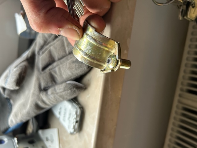 Und das soll beim Neuen ja nu nich gleich so aussehen. Wir haben beim Schwatten also erstmal geübt. Aber die Schelle abkriegen is echt ne Qual. Von oben durchbohren is Scheisse und von unten is auch Scheisse. Kopf mitm Meißel abscheren is auch Scheisse. Weil der Kopf von der Abreißschraube gesichert is. Hast auch keinen Platz um mit Thors Hammer richtig zornig auszuholen. Eigentlich is das da alles Scheisse. Also FLEXX ! Dateianhang: