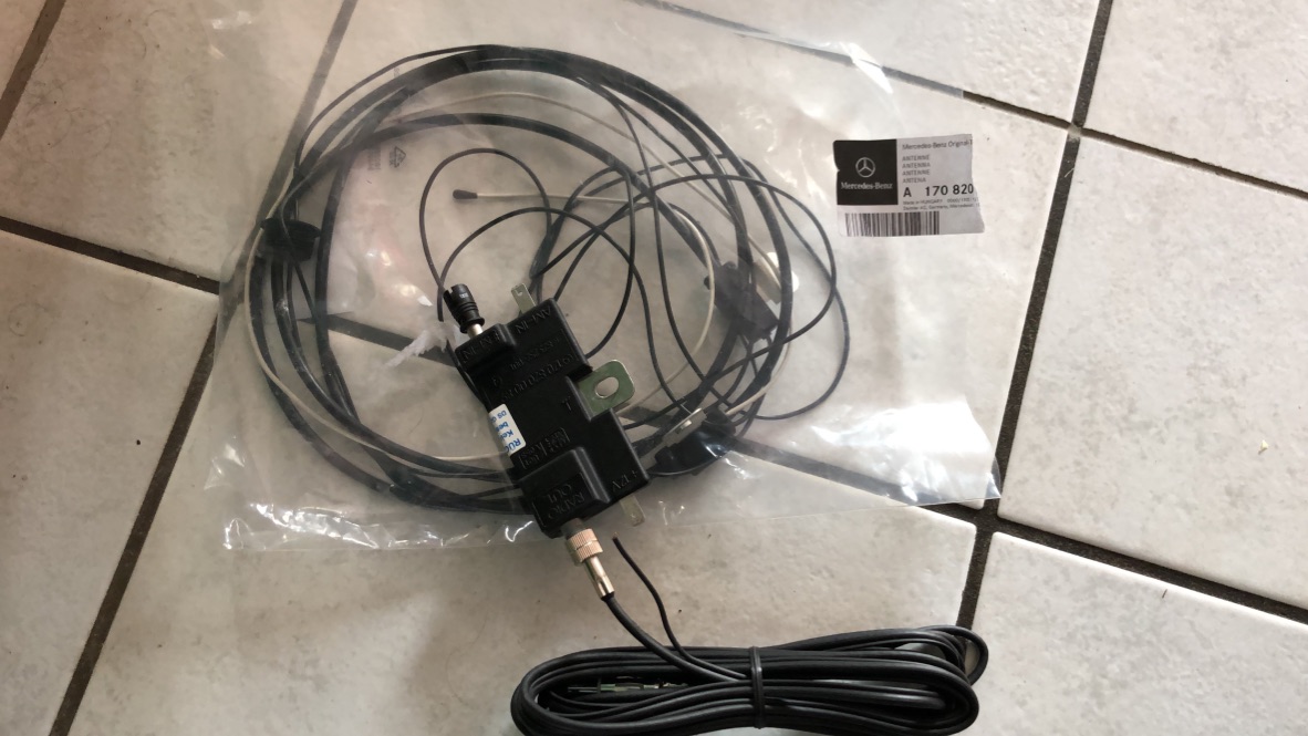 Da ich bei Cully, meinem TF, für unsere Touren ein CB-Funkgerät fest verbaut habe, ist auch die Standard-Antenne einem entsprechenden Funkmodell gewichen. Ich wollte nämlich irgendwie auf die frisch neulackierte Monogram-Haube keine Magnetfuß-Antenne draufklatschen. Versteht ihr ja sicher. Daher hatte ich nun das Problem, was ich mit dem Radio-Empfang machen soll. Fensterklebekram kam für mich nicht in Frage, also hab ich in diversen Foren mal rumgegoogelt, und bin auf die Stoßstangen-Antenne vom Mercedes SLK W170 gestoßen. Die ist bei der Karre hinten in der Schürze drin, aus naheliegenden Gründen (Mittelmotor) wollte ich die lieber vorn haben. Vielleicht möchte ja jemand hier auch einfach nur die Pieks-Stange hinten weghaben und auf unsichtbar umrüsten, dafür ist das natürlich auch gut geeignet. Teil 1: Was wird gebraucht?Das ist einfach zu beantworten. Man braucht die Antenne selbst, den dazugehörigen Verstärker und ein passendes Antennenkabel mit zusätzlicher Stromleitung und Installationsmaterial. - Antenne: Mercedes Teilenummer A1708200075. Mittlerweile schwer zu kriegen. Ich hab die beim Mercedes Online Shop noch gefunden für stolze 66,20 € inkl. Versand - Verstärker: Mercedes Teilenummer A1708200089, gebraucht für um die 20,00 € zu bekommen - Kabel: Antennenkabel mit Schaltlitze, antennenseitig M10 x 0,75, radioseitig DIN Stecker, habe ich z.B. hier gefunden. - Flachstecker und Verbinder zum crimpen, 2 Schrauben M4 x 10, Kabelbinder Nachfolgend das Teile-Paket: Dateianhang: