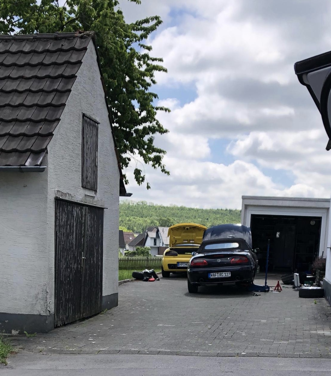 Ich wollte meiner Frau mal was gutes tun. Also bin ich zum Rosenverkäufer gefahren. Dort angekommen habe ich erstmal eine Runde mit dem Trophy seiner Frau gedreht. Das Fahrwerk von dem Auto hat mich echt überzeugt. Der liegt wirklich gut. Also ging es an das Fahrwerk des Fs meiner Frau: