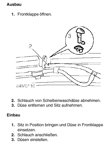 Liebe Forummitglieder, ich habe mir die Fiat Düsen wie hier im Forum beschrieben bestellt und krieg die alten jetzt nicht ausgebaut. Unter der Haube lässt sich nichts abziehen und von außen will ich nicht dran reißen. Bewegt sich nichts. Wie kriegt man die Teile ausgebaut? Das Plastikteil unter der Haube zusammen pressen bringt auch nichts, es rührt sich nichts, konnte nur den Schlauch abziehen, mehr nicht. Finde nur eine Diskussion darüber, dass es Saab, Citroën und Fiat Teile gibt, aber nicht wie die alten Teile ausgebaut werden können. Muss ich die zerstören? Schöne Pfingsten! Gunther