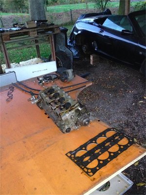 Yeah Uli ! Also erst mal Shopping .... auch gut ! Da hab ich was, was ich google zum Fressen gebe ! Danke ! Hab meinen Engländer gefragt welche Zylinderkopfdichtung er empfiehlt. Der Engländer der den Kopf geskimmed hat, den ich bei Ihm gekauft habe. So´n RennSkimmKopf. Kompression erhöhend, wie auch immer. Nein , nicht dieser Dave Andrews , sondern ein "Ben" , der auch seit 20 Jahren im Motortuning/Sport aktiv ist. Da scheint es ja auf der Insel wohl einige mehr von zu geben. Auf jeden Fall isser auch ein erfahrener Ansprechpartner. Ich frag Ihn auch mal wie seine Bude heißt. Der sagt : für die normale Ölschiene langt eine FAI HS 890 Zylinderkopfdichtung, nimmt er auch für seine Rennköpfe und für die MLS Dichtungen ist die verstärkte Ölschiene unabdingbar. Na dann ... wissen wohl die Meisten, wollt es nur mal als Info weitergeben. Knowledge sharing sozusagen. Jetzt hab ich noch ein paar Fragen : da mir der Keiriemen gerissen ist, sind ja wohl alle Werte verstellt und Ventile dem Schrotthändler zu übergeben. Nun hab ich gestern ja noch die E12 Torx Nuss gekauft und die Dehnschrauben rausgeschraubt, letzte Aktion des Tages, bevor mir unter meinem Carport die Nieren eingefroren wären. Nun, da ich fast alles abgebaut habe, ausser diese Zahnräder "Cambelt Seite" lese ich folgendes : http://www.timguydesign.f2s.com/pics/MG ... cement.pdfund da steht : now The cylinder liners are loose ! Ok , hab ich verstanden. nun bloss nicht an der Kurbelwelle drehen , sonst geht da was in dutt. Was heißt das für mich ? jetzt zuerst den neuen Zylinderkopf ( wenn die Post sich endlich mal bequemt ) drauf und festziehen und danach die Kurbelwelle in diese Service Position bringen ? oder besser jetzt sofort alle Schrauben wieder rein und die Kurbelwelle richtig stellen, da oben im Kopf sowieso alles krumm und schief ist und danach den neuen Kopf drauf ? was ist da der Königsweg ? Zur Belustigung mal meine friesisch herb Werkstatt, sofern sich das Bild hochladen läßt !! Ich ahne schon wie ich im Winter vorm Bollerofen an der Kiste herumschraube. Bild wird grad nix , zu groß ... Na dann ... Vielleicht wäre es auch besser zuerst das Carport zur Werkstatt umzubauen, als sich gleich an dem MGF zu erproben.