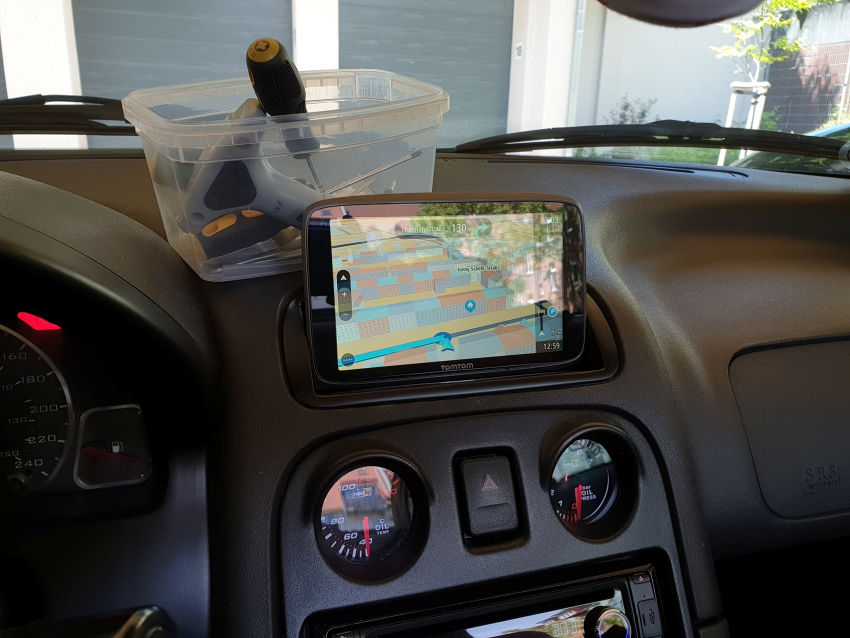 Hab mein Navi auch an der Stelle, jedoch nur angeclipst. Problem ist, dass bei Sonnenschein und offenem Verdeck das Display nicht zu erkennen ist.Falsches Navi?