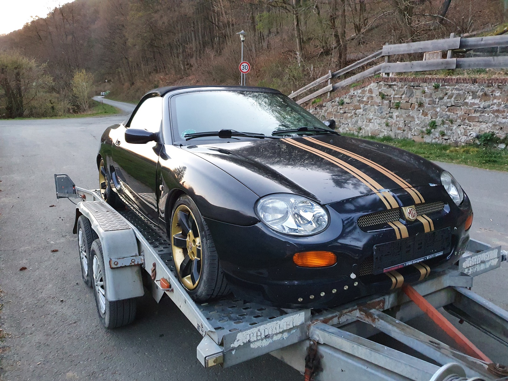Aufgrund Corona und Co hats etwas länger gedauert, aber nun ist er endlich fast zuhause. Abgeladen wird der erst wenn ich das Fahrwerk morgen auf Höhe gebracht habe, sonst trage ich die Stoßstange einzeln in die Garage.