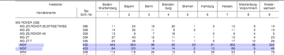 Sind ca. 500 MG-F weniger und 55 MGF VVC weniger