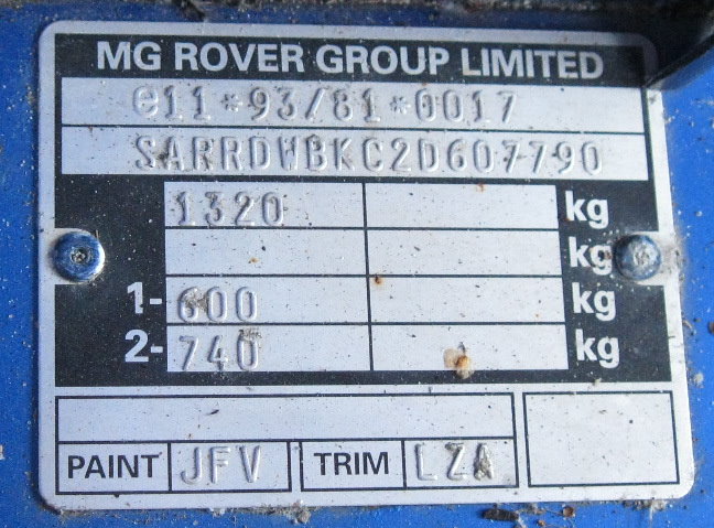 dann hier auch noch diese Nr: SARRDWBKC4D620833 Ist ein TF 135, RHD, Bj 2003 in Le Mans Grün. 2012 von der Insel geholt....