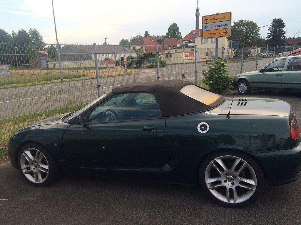 zuerst LB-MD 1963 MGF 1,8i MkI von 55.000km-155000 km, VIN 507105 brg (HFF)/beige jetzt: LB-MG 5563 MGF 1,8i MkII ab km 66.000 z.Zt. 225 000km, VIN 534335, brg (HFF)/black mit DK52, Carbonairbox, cw,short knuckles etc