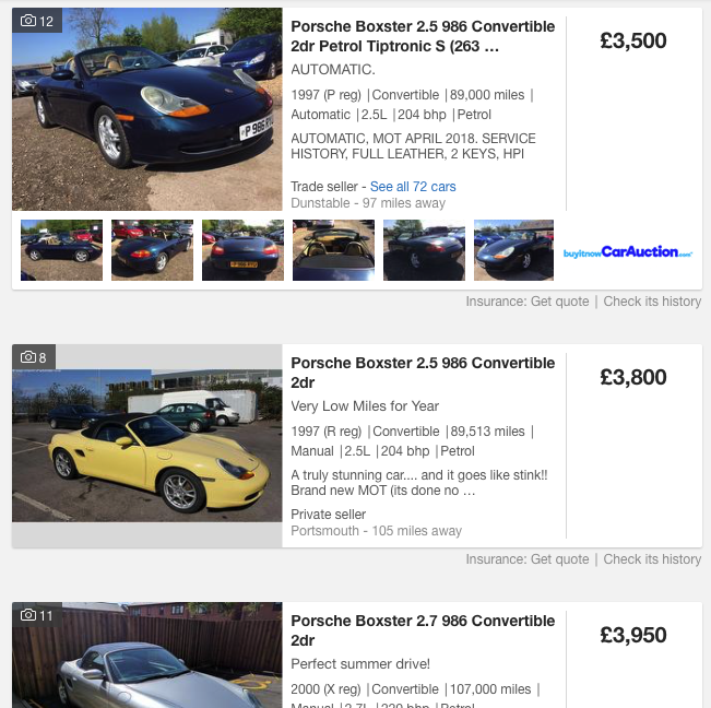 Ein Boxster der 1. Generation, das passt schon. Gebrauchtwagen sind in UK generell deutlich billiger als hier, der Markt ist kleiner. Dateianhang: