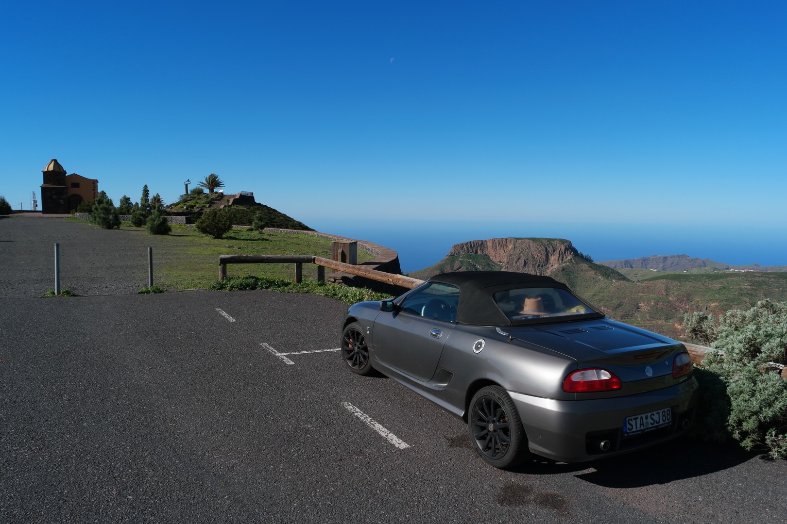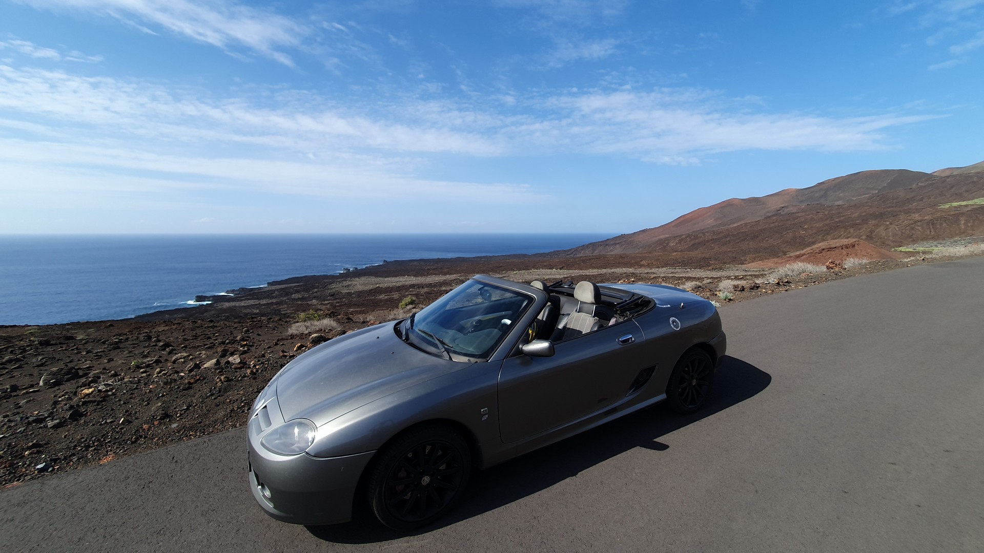 Hallo liebe MGler, ich möchte hier mal äußerst positiv zu unserem geschätzten Fahrzeug schreiben Seit letztem September bis diesen Februar habe ich eine lange Reise mit meinem MG TF Spark, BJ 2004, unternommen, quer durch Südwesteuropa. Angefangen relativ schnell durch den Schwarzwald, über Landstraßen durch die Schweiz und Frankreich bis zur Mittelmeerküste Spaniens. Mein Plan war Spanien und Portugal zu entdecken, deswegen ging es dann über die Pyrenäen bis zur Atlantiknordküste Spaniens und hinunter über Portugal bis letztlich per Fähre auf die Kanarischen Inseln. Dort durfte er das erste Mal im 'Winter' fahren. Insgesamt ein halbes Jahr mit ca. 12000 km Fahrt in Summe. Hier die Tour: https://de.mapy.cz/s/karezovusuEs ging über holprige Straßen und enge Gässchen, immer Abseits des Trubels und von Städten und meist auch nur durch wenig touristische Ecken. Hab mich vorher noch ordentlich über extra Plus Mitgliedschaft bei einem Automobilclub abgesichert aber glücklicherweise nie benötigt. Nie gab es irgendwelche Probleme mit dem Auto. Obwohl ich schon mal mit der Zurröse aufgesetzt habe oder ähnliches kam er völlig unbeschadet wieder zurück. Die lange und intensive Sonne hat zwar den Scheinwerfern und auch dem Verdeck etwas zugesetzt, aber das wars auch schon. Nur am Hafen von Teneriffa hab ich mir irgendwo einen Platten eingefahren, konnte ihn aber notdürftig mit Flickset mit kleinem Kompressor soweit flicken, dass ich die Fähre noch nehmen konnte. Ich musste dann auf einer der abgelegensten Inseln Europas auf El Hierro einen kompletten Satz neue Reifen aufziehen lassen, da sie hinten platt und vorne schon keilförmig abgefahren waren. Aber selbst das war trotz der unüblichen Reifengrößen kein Problem. Hat allerdings eine Woche gedauert und ich hab 'nur' die Nexen N´Fera Primus bekommen, aber immerhin. Die Kommunikation war etwas kompliziert mit meinem noch rudimentären Spanisch, aber ging schon. Im Wagen war jeder Zentimeter genutzt, ich hatte hinten im Kofferraum meine Klamotten und das komplette Camping Equipment mit Zelt, Isomatte, 2 Schlafsäcken für unterschiedliche Temperaturen. Vorne waren Schuhe und Elektronik wie kleines Laptop und Ladegeräte. Im Beifahrerfußraum eine Mini-Kühlbox und Camping-Kocher und Zubehör. Beifahrersitz war reserviert für Lebensmittel. Viele meiner Kollegen und Freunde haben mich für etwas bescheuert gehalten, so eine lange Tour mit dem kleinen Auto zu unternehmen. Klar, die sind vielleicht Wohnmobil oder Bus verwöhnt. Aber genau das wollte ich nicht. Zum Einen habe ich nur den MG als Auto, zum anderen wollte ich so minimalistisch wie möglich unterwegs sein und gleichzeitig die Landschaft und Straßen bestmöglich genießen können. Und ich sage Euch, was für geile Straßen! Ganze Pässe hatte ich für mich alleine bei bestem Teer, ich hab das Grinsen lange nicht mehr aus dem Gesicht bekommen. Leider hat das Treffen mit den spanischen MGlern nicht geklappt, ich war erst zwei Wochen nach deren Tour in der Region, aber auch so war es immer spannend. Ich habe während der ganzen Reise aber andere MGler (2x MGB) getroffen, mit denen man sich über die 'geilen Karren' unterhält, auch Leute aus Wales, die bei MG gearbeitet haben etc. . Oft bin ich angesprochen worden und so sind einige nette Bekanntschaften entstanden, auch mit Motorrad Gruppen auf Tour. Die 1,5 Monate Anreise mit viel Zelten war zwar irgendwo auch anstrengend, aber positiv. Ich hatte Glück mit dem Wetter und meistens konnte ich das Zelt komplett trocken wieder einpacken, ansonsten wurde es ja meist am Nachmittag schon wieder ausgepackt. Das viele Umräumen im Kofferraum war zwar manchmal nervig, aber es ging immer irgendwie. Anschließend auf den kanarischen Inseln war ich immer in Unterkünften, ab Dezember dann auch mit meiner Frau zusammen, die mit Flugzeug nachgekommen ist. Dann wurde es kuschlig im Auto, aber mit Rucksack auf dem Schoß konnte sie sich für die Stunde Fahrt von einer Unterkunft zur nächsten auch anfreunden. Und auf den Inseln bin ich ja meist dann unbeladen gewesen und konnte die Straßen noch entspannter, meist aber flott fahren. Ein Raser bin ich eh nicht, aber ab und zu mal durchtreten macht mir schon noch Spaß. Im Februar bin ich dann relativ schnell über Autobahnen von Südspanien wieder zurück, weil ich mit den Sommerreifen nicht in Schnee kommen wollte in der Nähe der Alpen. War dann recht stressig, aber selbst 900km am Tag für den Kleinen kein Problem. Alles in Allem ein super gelungener Trip und ich bin immer noch froh, dass mich mein MG jetzt fast 18 Jahre begleitet. Für mich gibt es auf dem Markt keine Alternative, ich hab schon fast Sorge, wenn er dann doch irgendwann nicht mehr mag oder die Reparaturkosten unsinnig werden. Zu unserem gemeinsamen 18. Jubiläum im Mai werden wir hier noch eine schöne Ausfahrt machen und ich schenk ihm ne ordentliche Pflege  Wünsche Euch genauso viel Freude mit dem MG! Euer Stefan