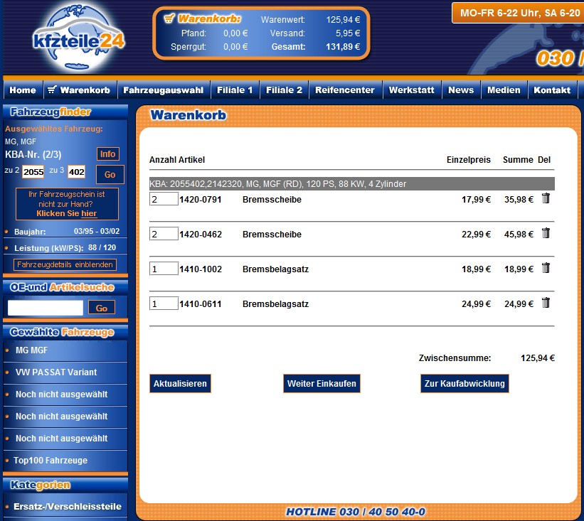 Hm, also irgendwie habe ich wohl einen Rechenfehler. Wenn ich mir die Preise beispielsweise bei Sussex angucke, komme ich mit Scheiben und EBC green-Belägen auf ca. 100 € + Versand aus UK.  Edit: Das war nur für hinten.  Für vorne kämen dann nochmal rund 110 € dazu. Wenn es die kleine Bremsanlage ist.
