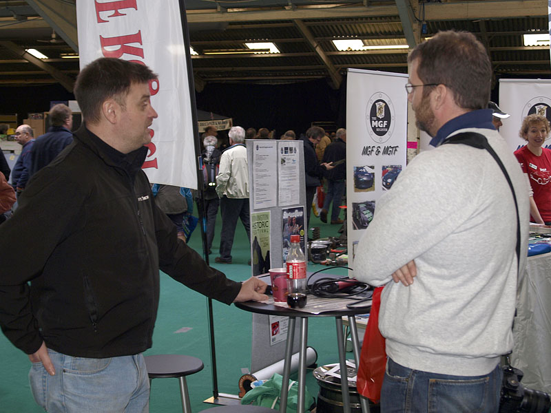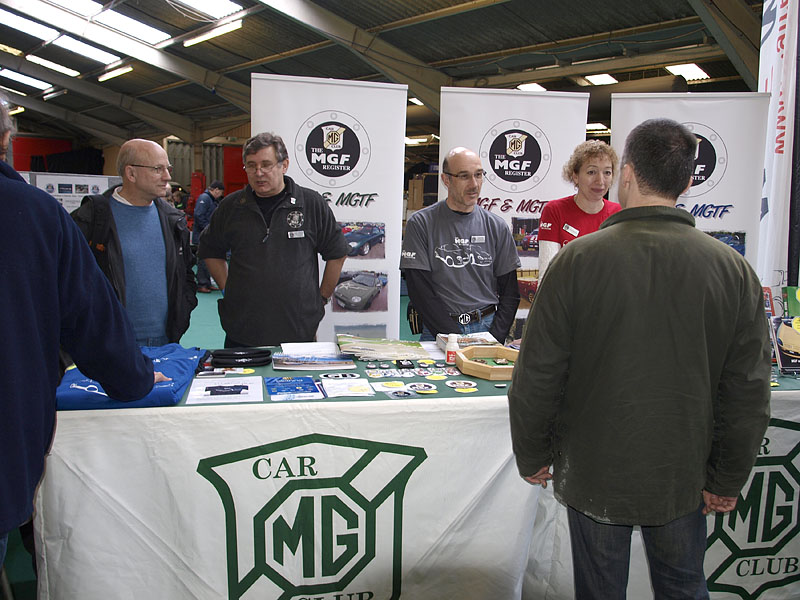 Das MGF Register hatte einen tollen Stand aufgebaut, mit Fs und TFs aus der ganzen Bauzeit. Es kamen auch recht viele Besucher, obwohl sich die Show (auch durch das Zusammenwerfen mit den Triumph-Leuten) immer mehr zu einer Oldtimer-Veranstaltung entwickelt. Zum Teilekaufen für Fs und TFs lohnt es sich eigentlich nicht mehr, hierher zu kommen.