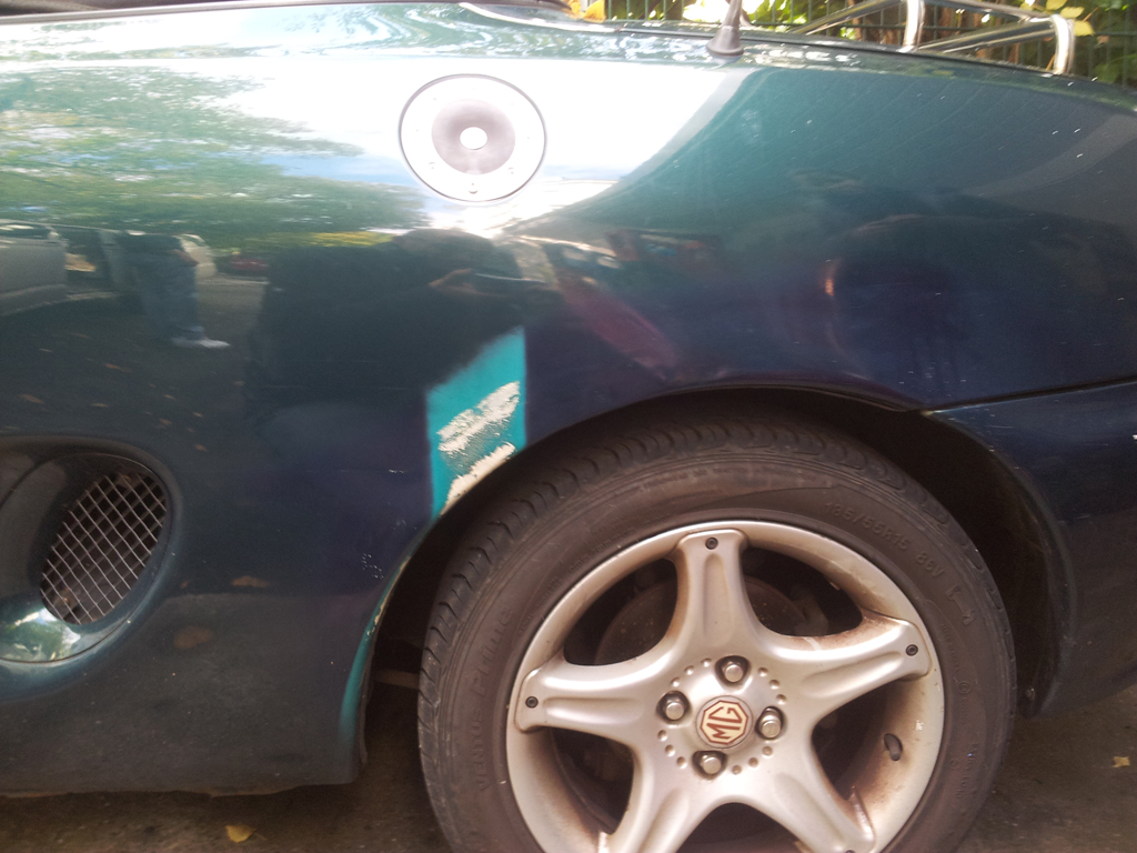 Der Kotflügel hinten links ist unfachmännisch repariert und lackiert worden: Dateianhang: